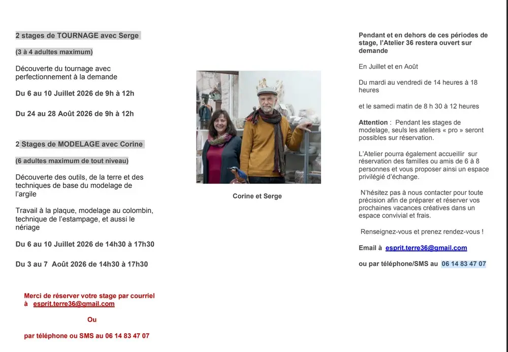stages de tournage et modelage. Pour tous, débutants ou confirmés, curieux ou amoureux du travail de l’argile. Soit 15 heures de tournage ou de modelage avec un(e) céramiste confirmé(e)